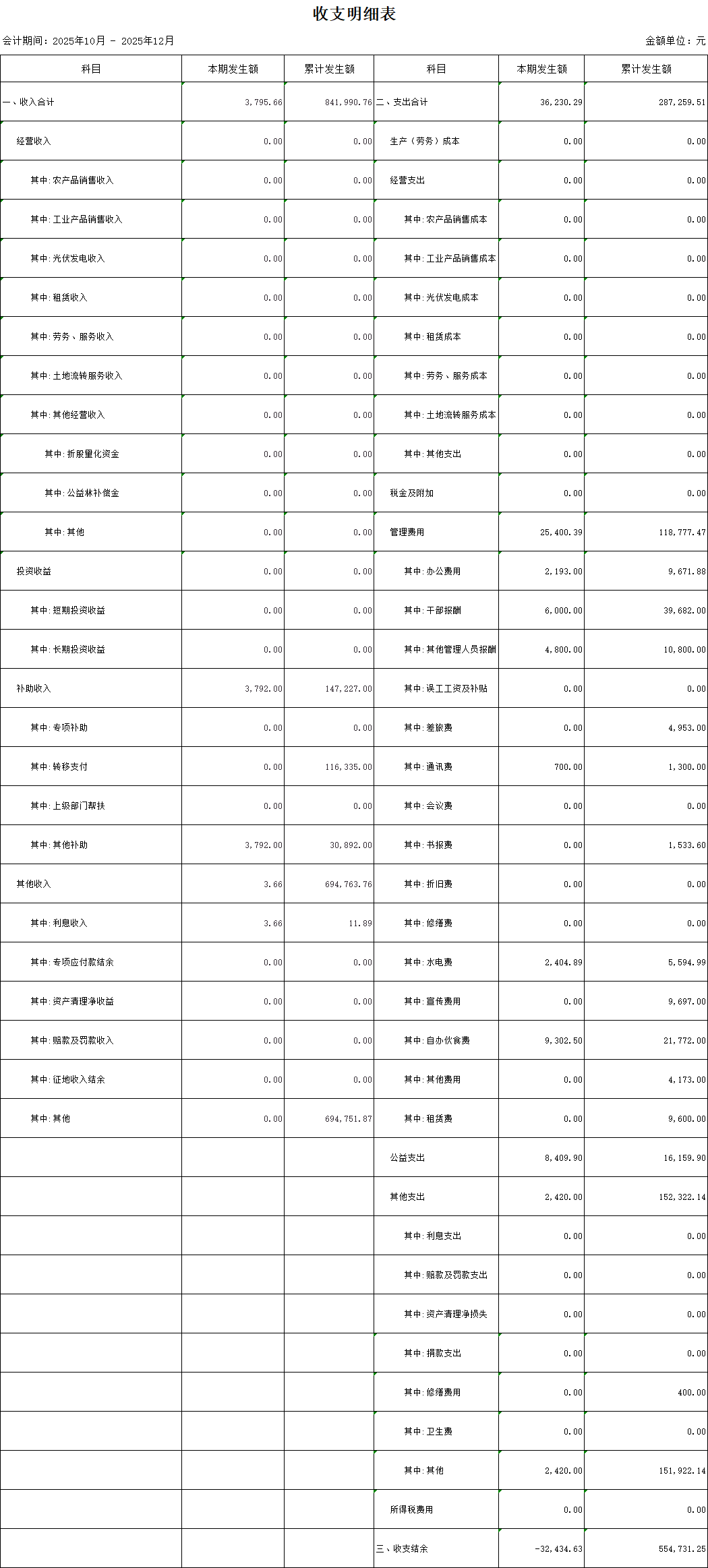 【財務收支】鄭塘村2025年第四季度收支明細表公示