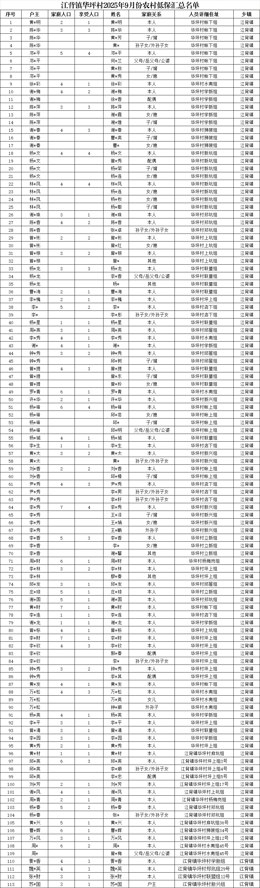 【社會救助】江背鎮華坪村2025年9月份農村低保匯總名單