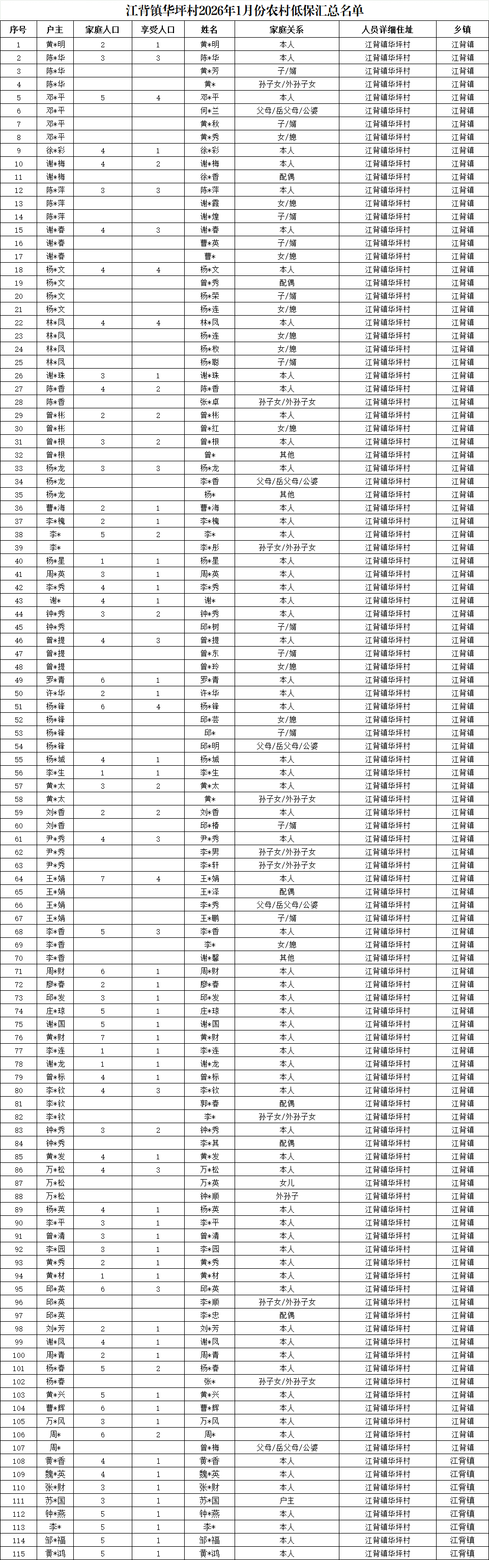 【社會救助】江背鎮華坪村2026年1月份農村低保匯總名單