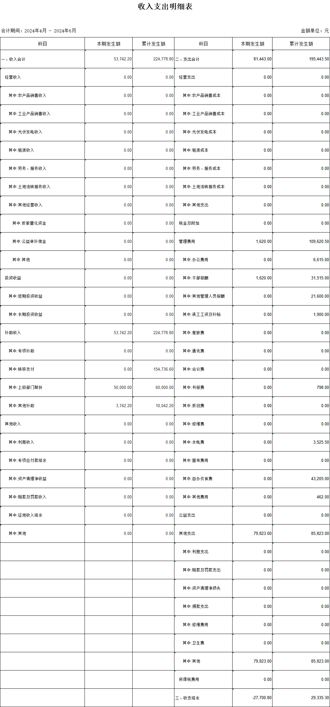 【財務收支】華坪村2024年第二季度收支明細表公示