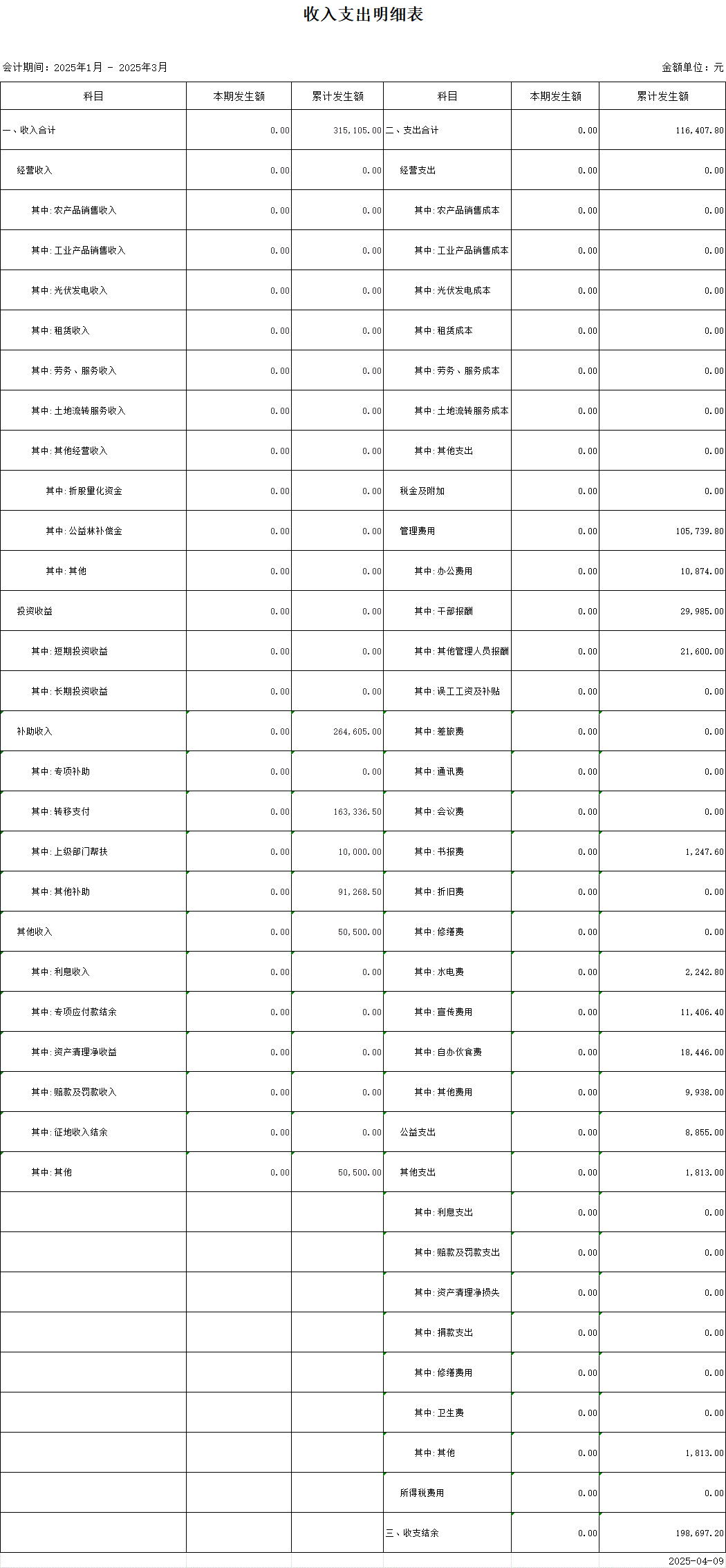 【財(cái)務(wù)收支】華坪村2025年第一季度收支明細(xì)表公示