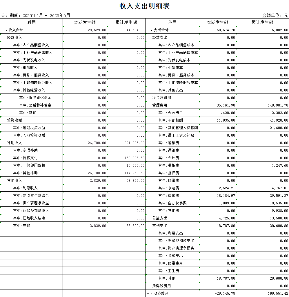 【財務收支】華坪村2025年第二季度收支明細表公示