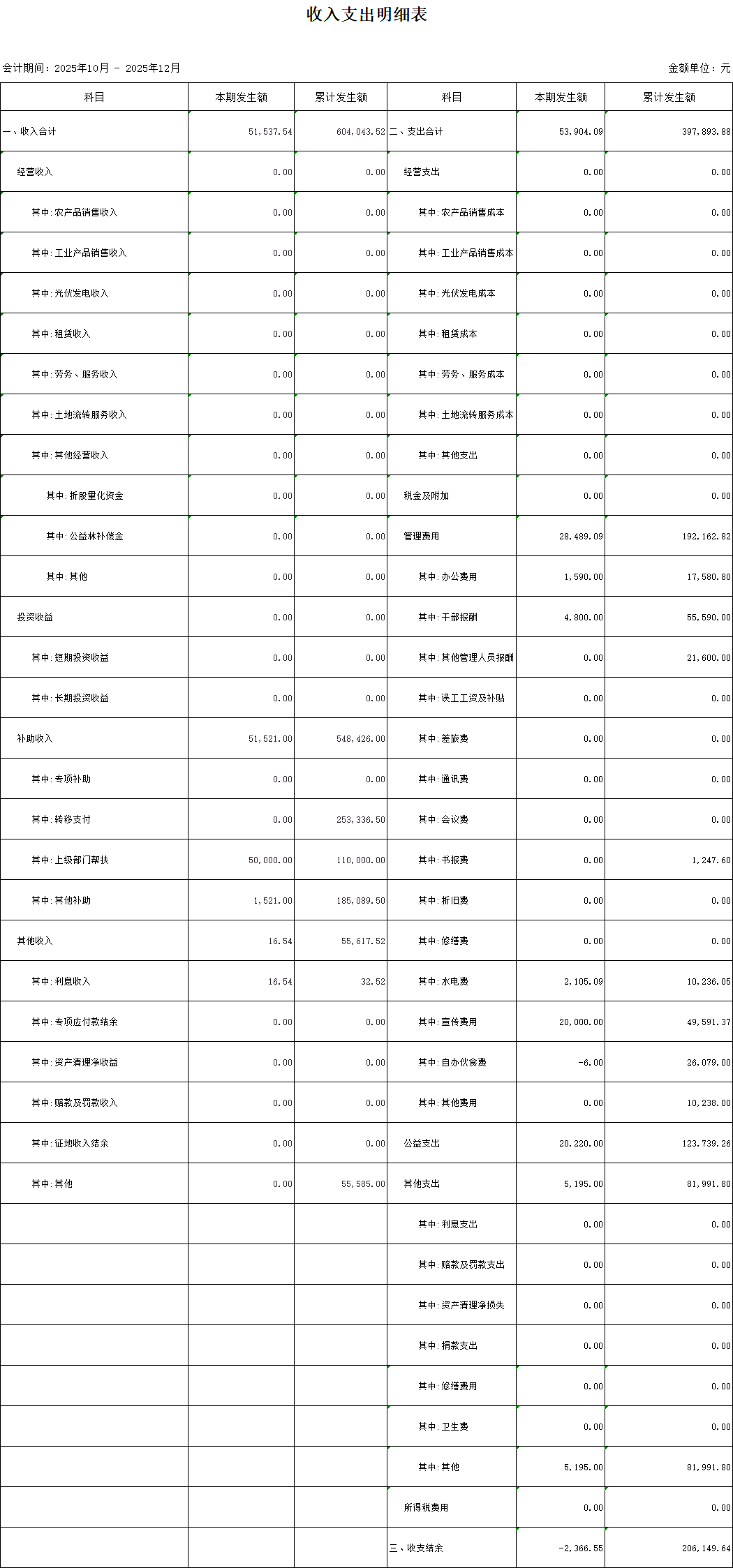 【財務收支】華坪村2025年第四季度收支明細表公示