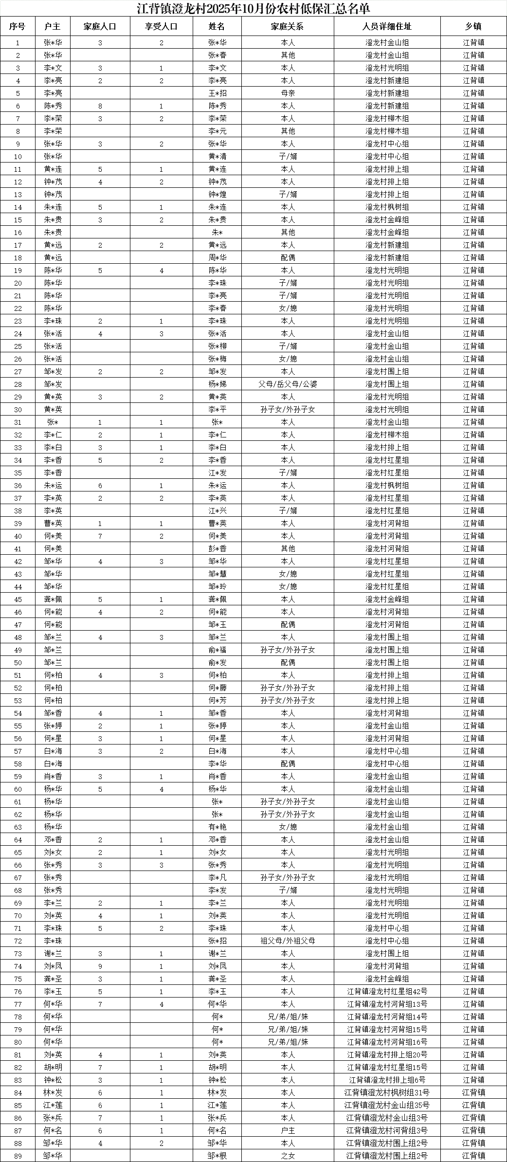 【社會救助】江背鎮(zhèn)澄龍村2025年10月份農(nóng)村低保匯總名單