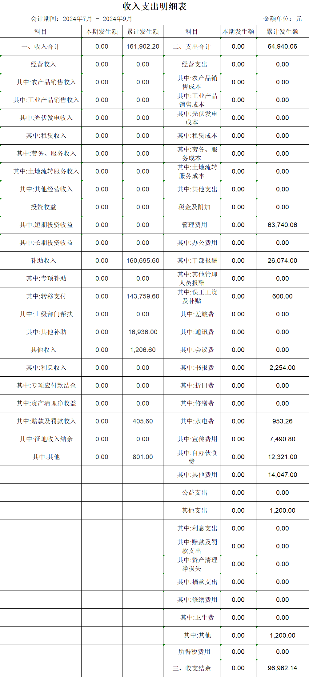 【財務收支】澄龍村2024年第三季度收支明細表公示