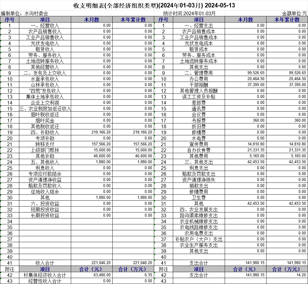 【財務收支】水溝村2024年第一季度收支明細表公示