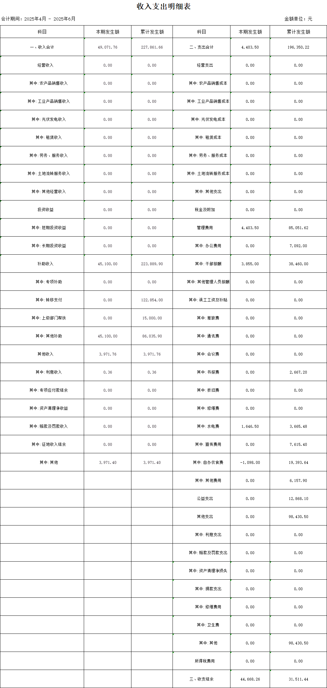【財務(wù)收支】水溝村2025年第二季度收支明細(xì)表公示
