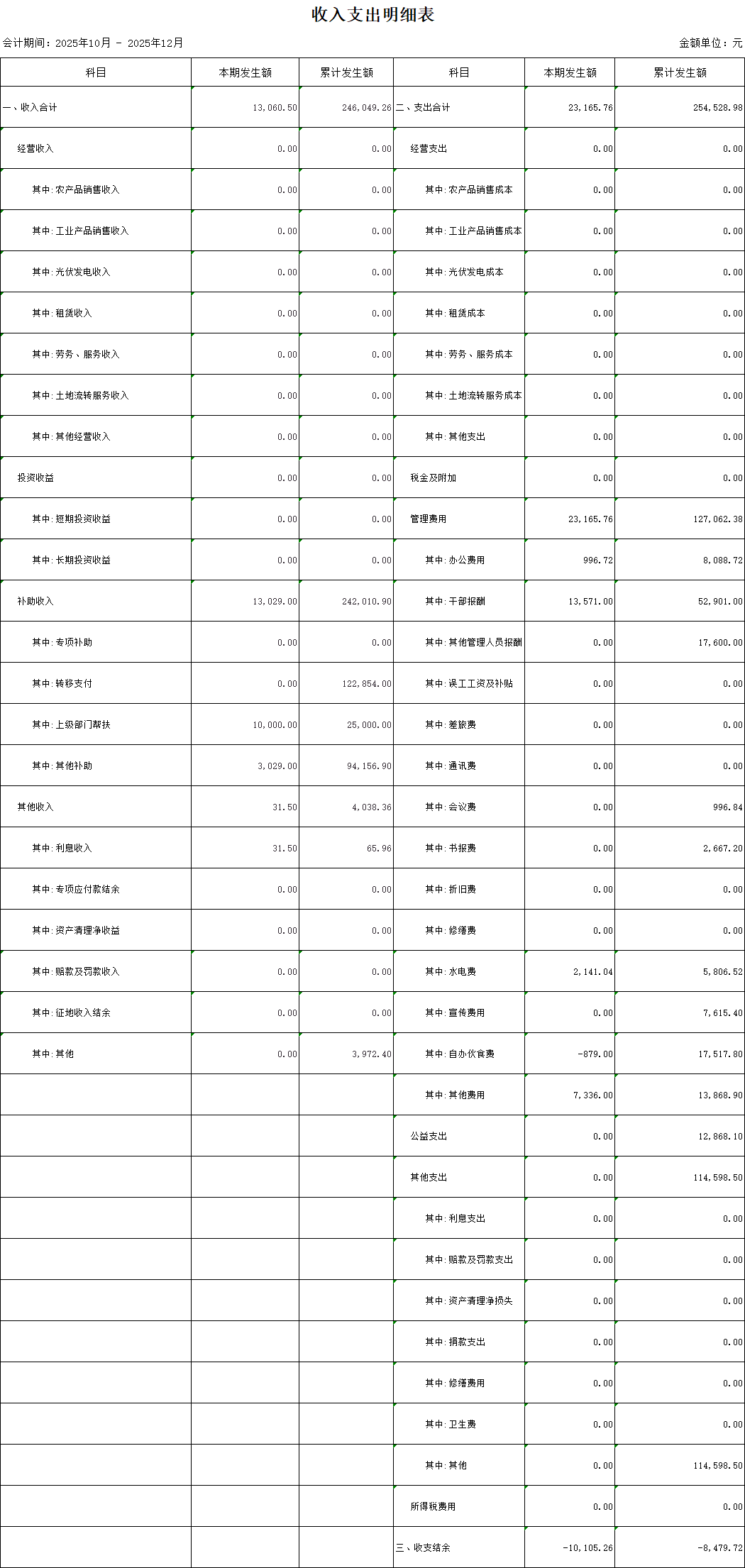 【財務收支】水溝村2025年第四季度收支明細表公示