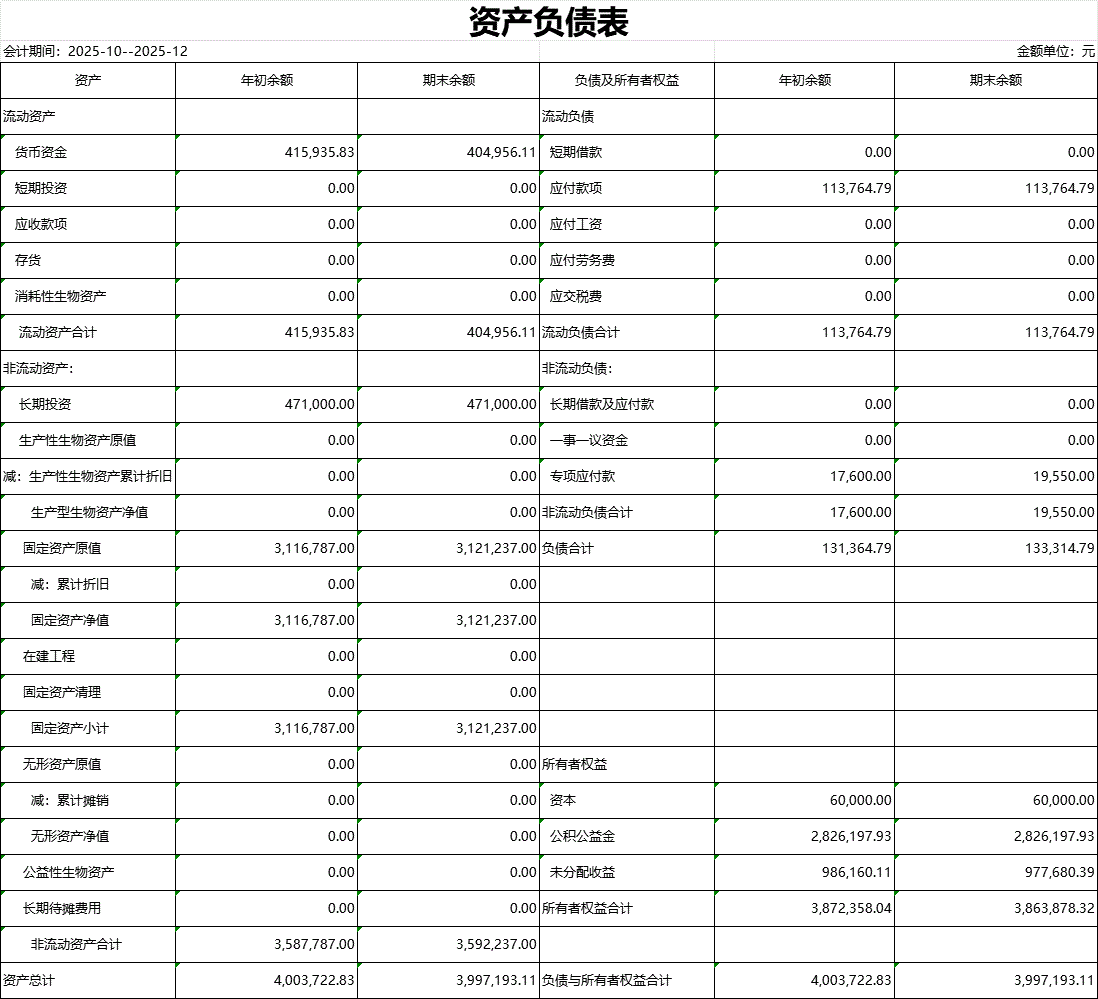 【財務(wù)收支】水溝村2025年第四季度資產(chǎn)負債表公示