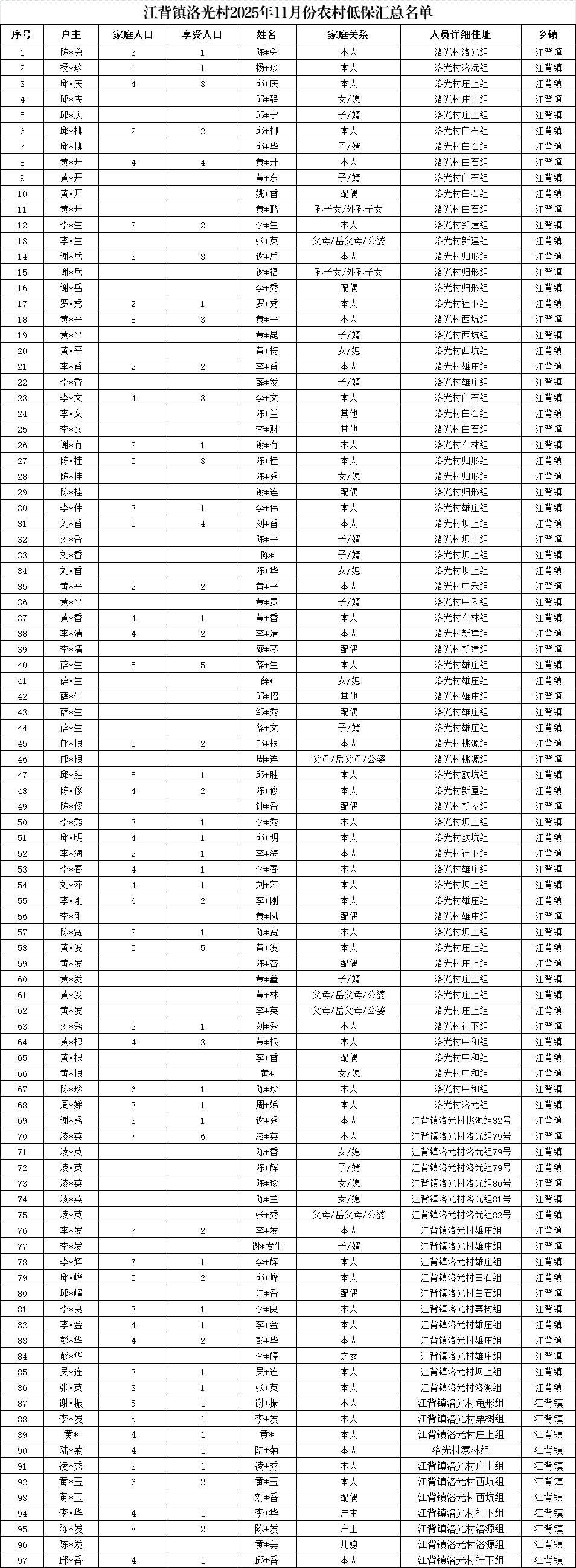 【社會救助】江背鎮(zhèn)洛光村2025年11月份農(nóng)村低保匯總名單