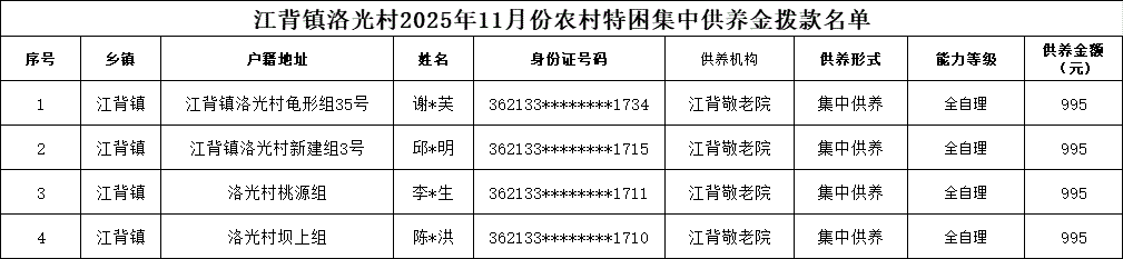 【社會救助】江背鎮洛光村2025年11月份農村特困集中供養金撥款名單