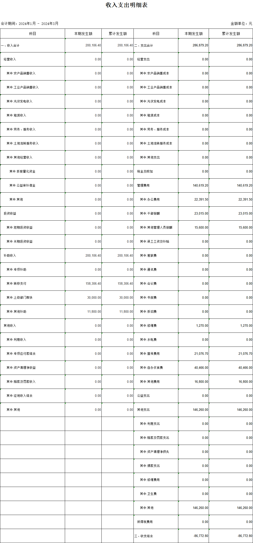 【財務收支】洛光村2024年第一季度收支明細表公示