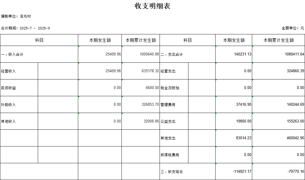 【財務收支】洛光村2025年第三季度收支明細表公示