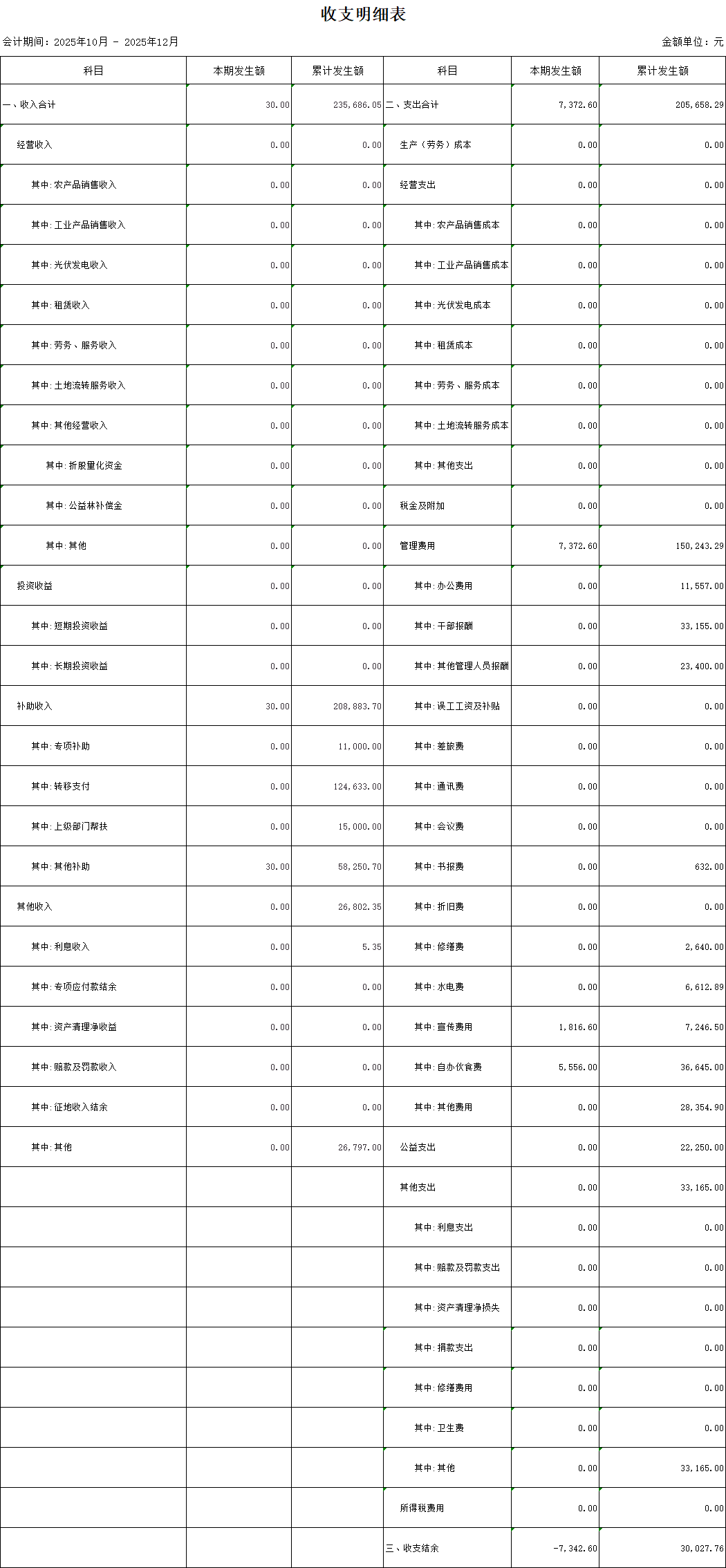 【財(cái)務(wù)收支】洛光村2025年第四季度收支明細(xì)表公示