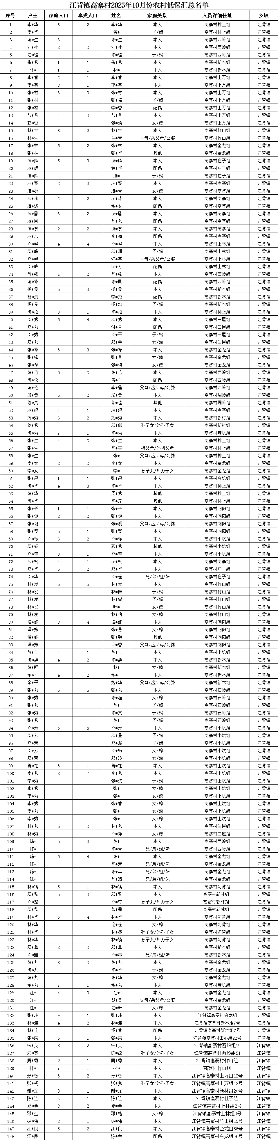 【社會(huì)救助】江背鎮(zhèn)高寨村2025年10月份農(nóng)村低保匯總名單