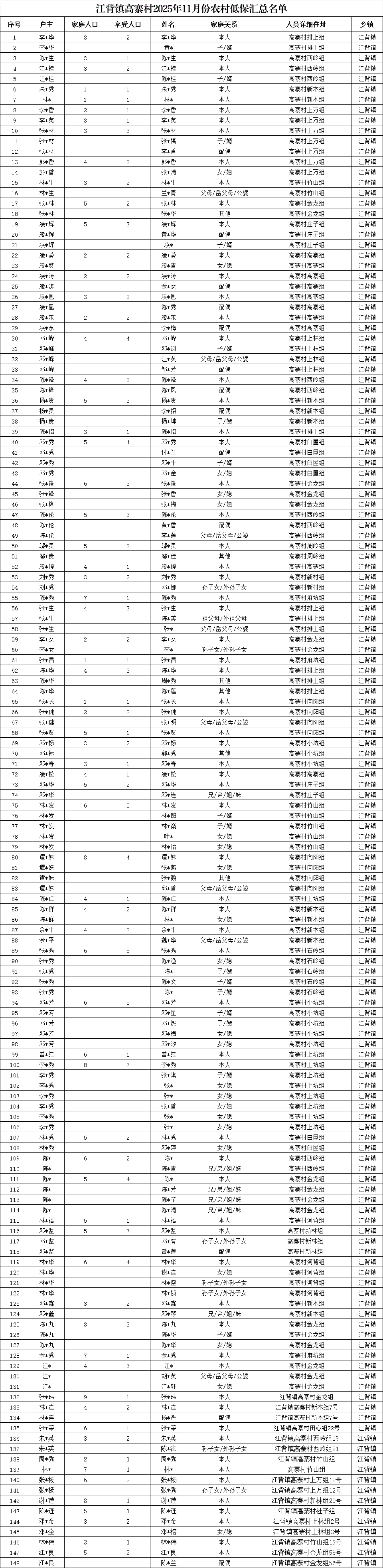 【社會(huì)救助】江背鎮(zhèn)高寨村2025年11月份農(nóng)村低保匯總名單