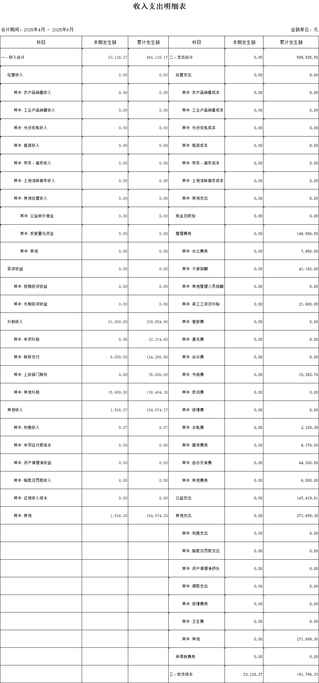 【財務收支】高寨村2025年第二季度收支明細表公示