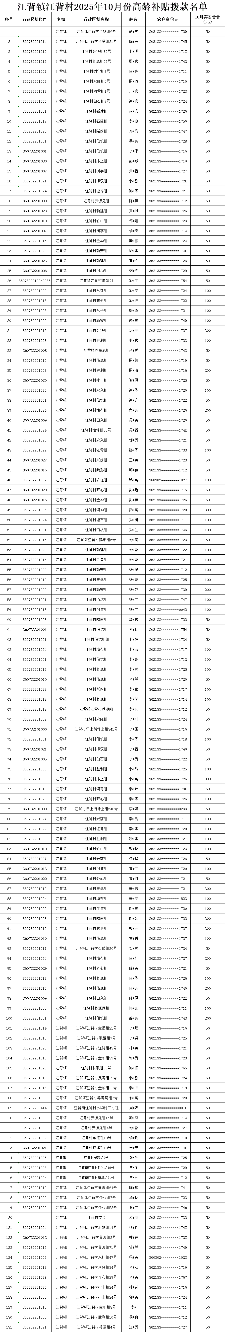 【養(yǎng)老服務(wù)】江背鎮(zhèn)江背村2025年10月份高齡補(bǔ)貼撥款名單