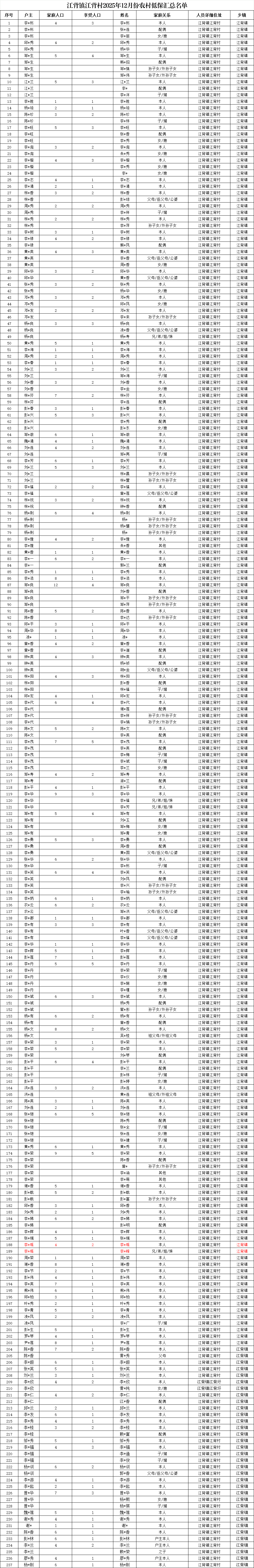 【社會救助】江背鎮江背村2025年12月份農村低保匯總名單