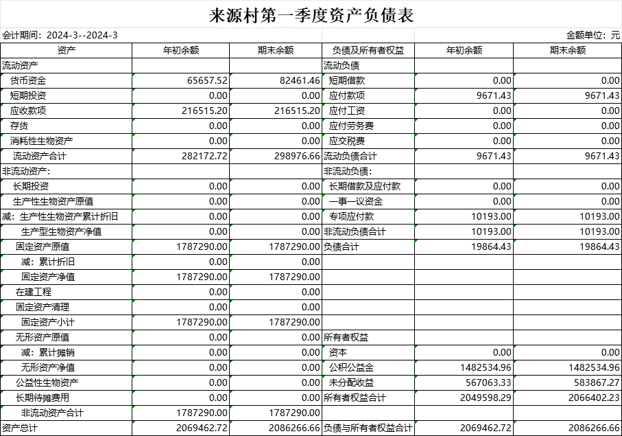 【財務(wù)收支】來源村2024年第一季度資產(chǎn)負債表公示