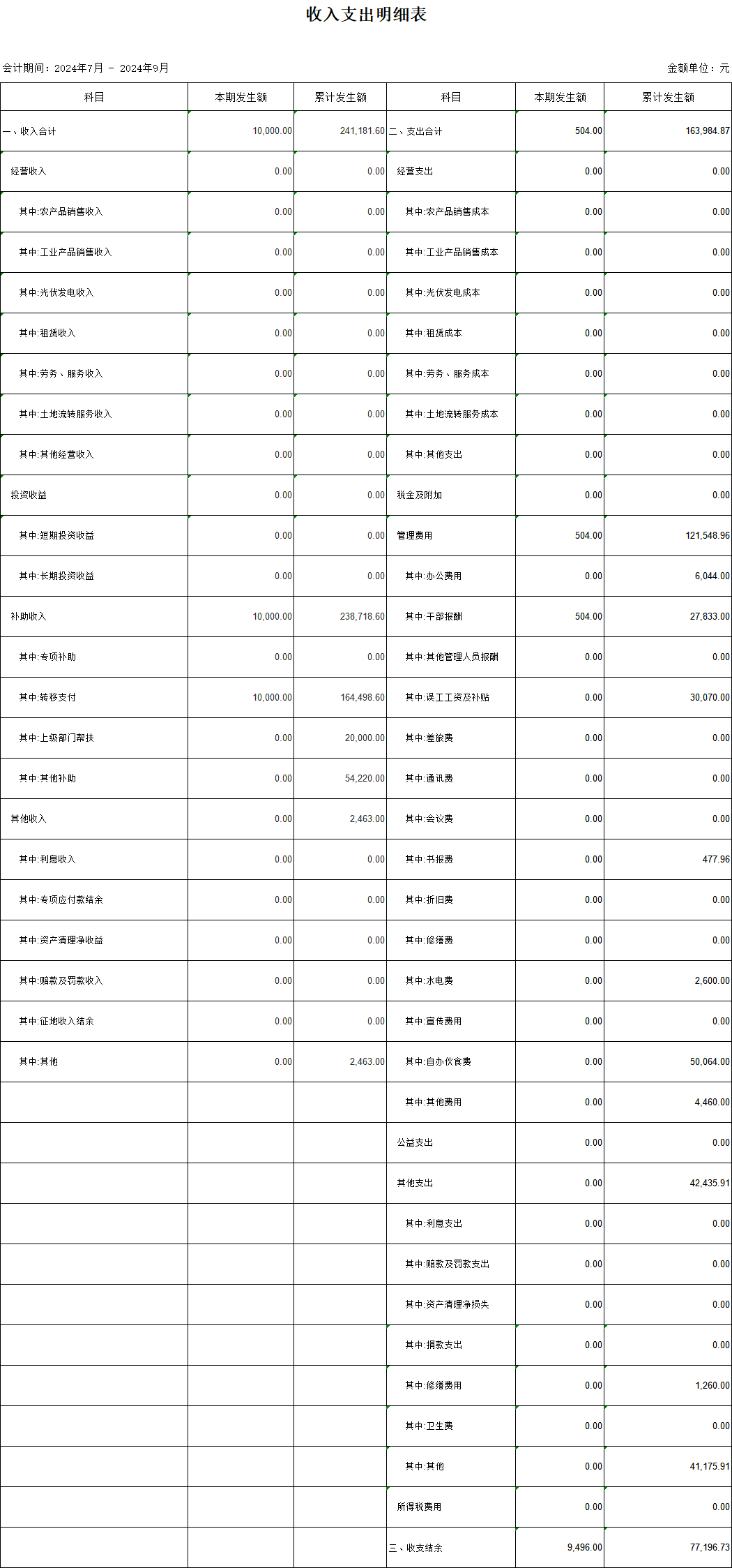 【財(cái)務(wù)收支】果源村2024年第三季度收支明細(xì)表公示