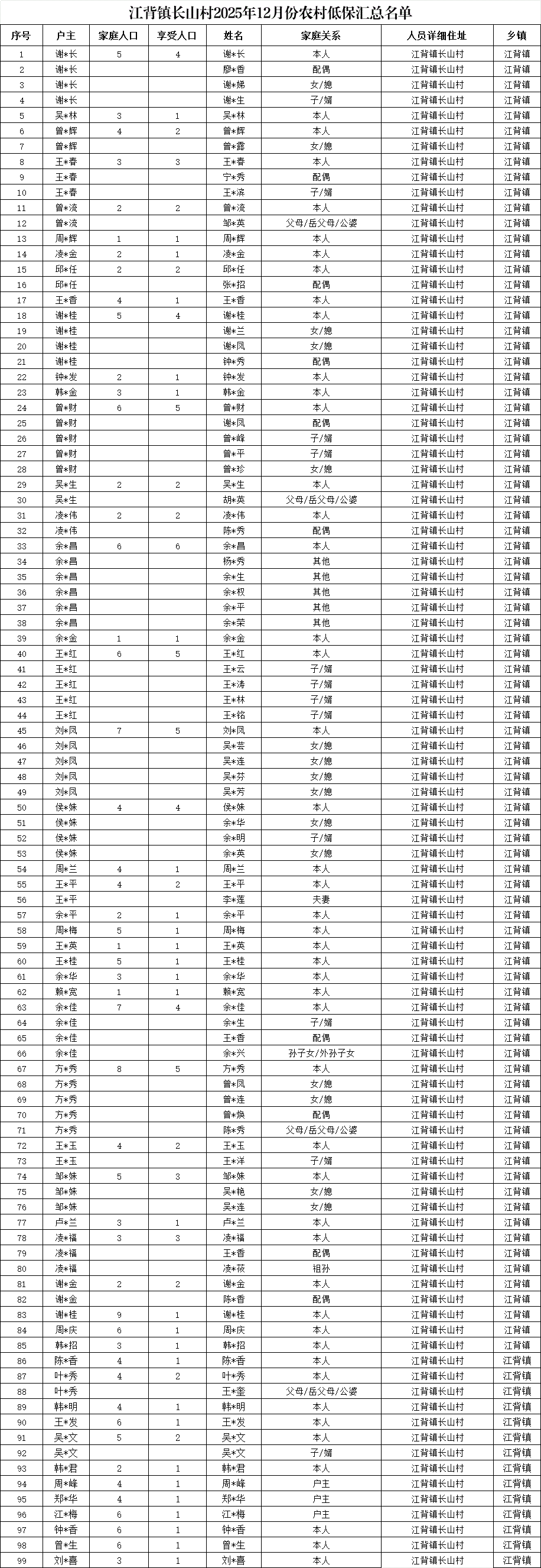 【社會(huì)救助】江背鎮(zhèn)長(zhǎng)山村2025年12月份農(nóng)村低保匯總名單