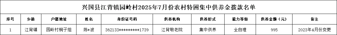 【社會(huì)救助】興國縣江背鎮(zhèn)園嶺村2025年7月份農(nóng)村特困集中供養(yǎng)金撥款名單