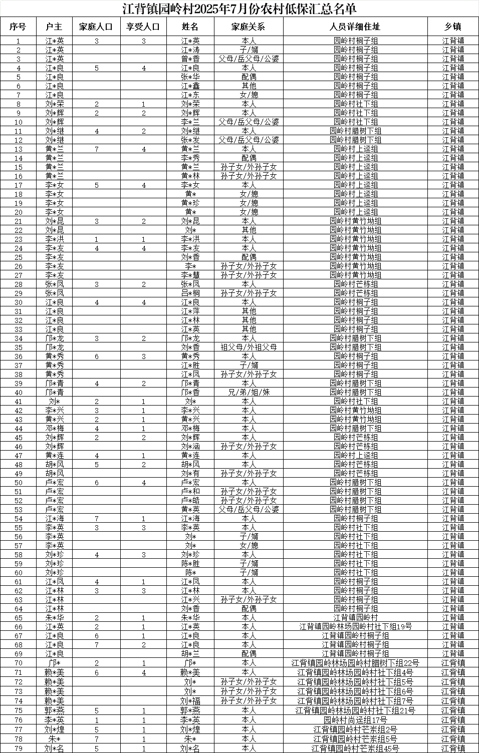 【社會救助】江背鎮園嶺村2025年7月份農村低保匯總名單