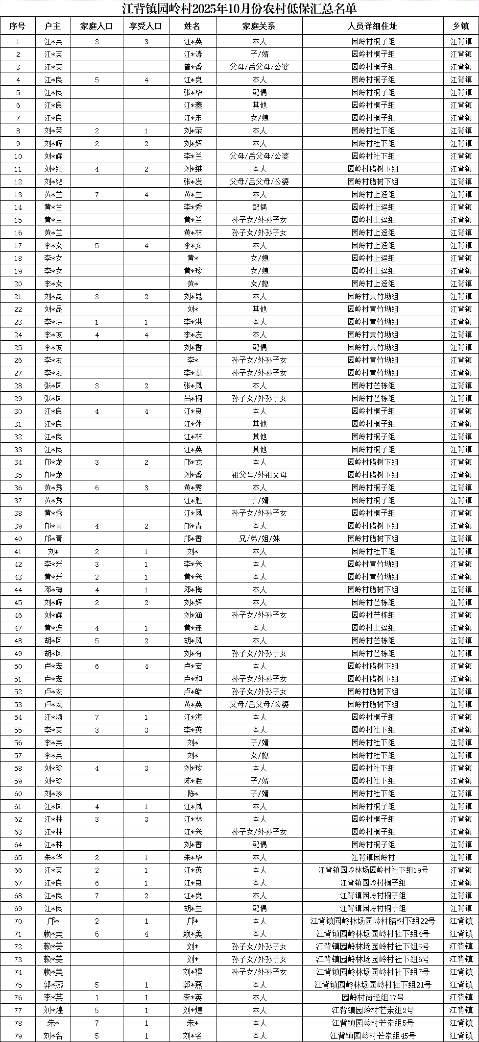 【社會救助】江背鎮(zhèn)園嶺村2025年10月份農(nóng)村低保匯總名單