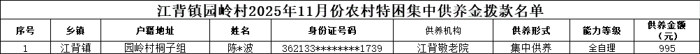 【社會救助】江背鎮園嶺村2025年11月份農村特困集中供養金撥款名單