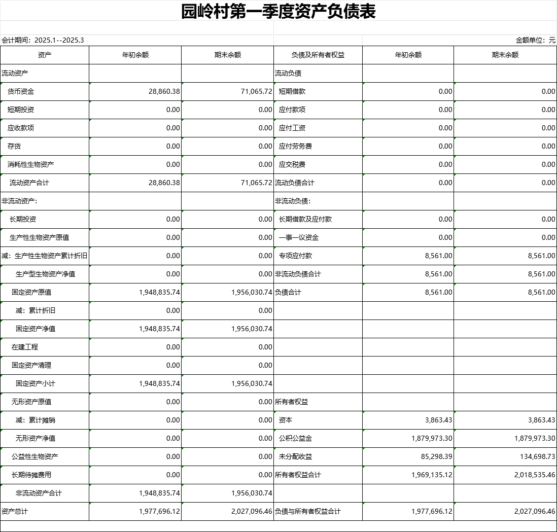 【財務收支】園嶺村2025年第一季度資產負債表公示