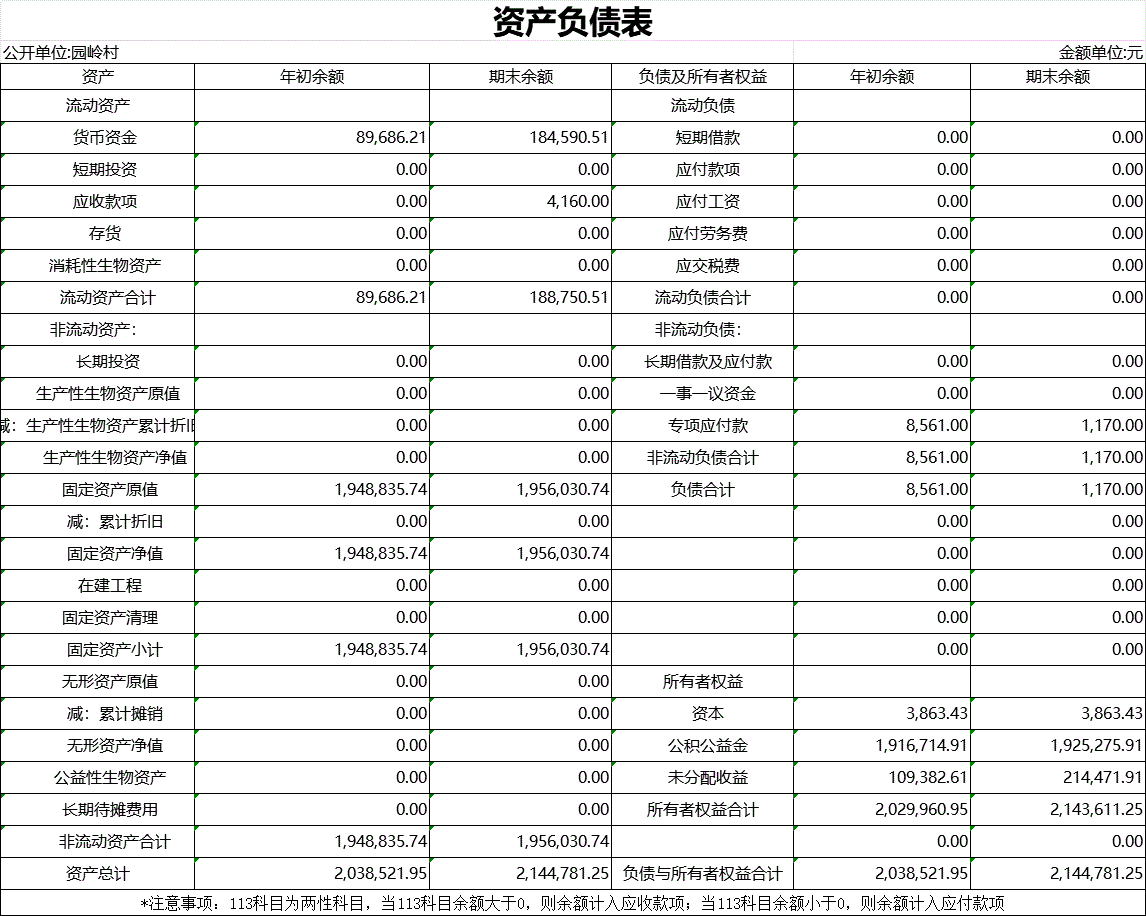 【財務收支】園嶺村2025年第四季度資產負債表公示