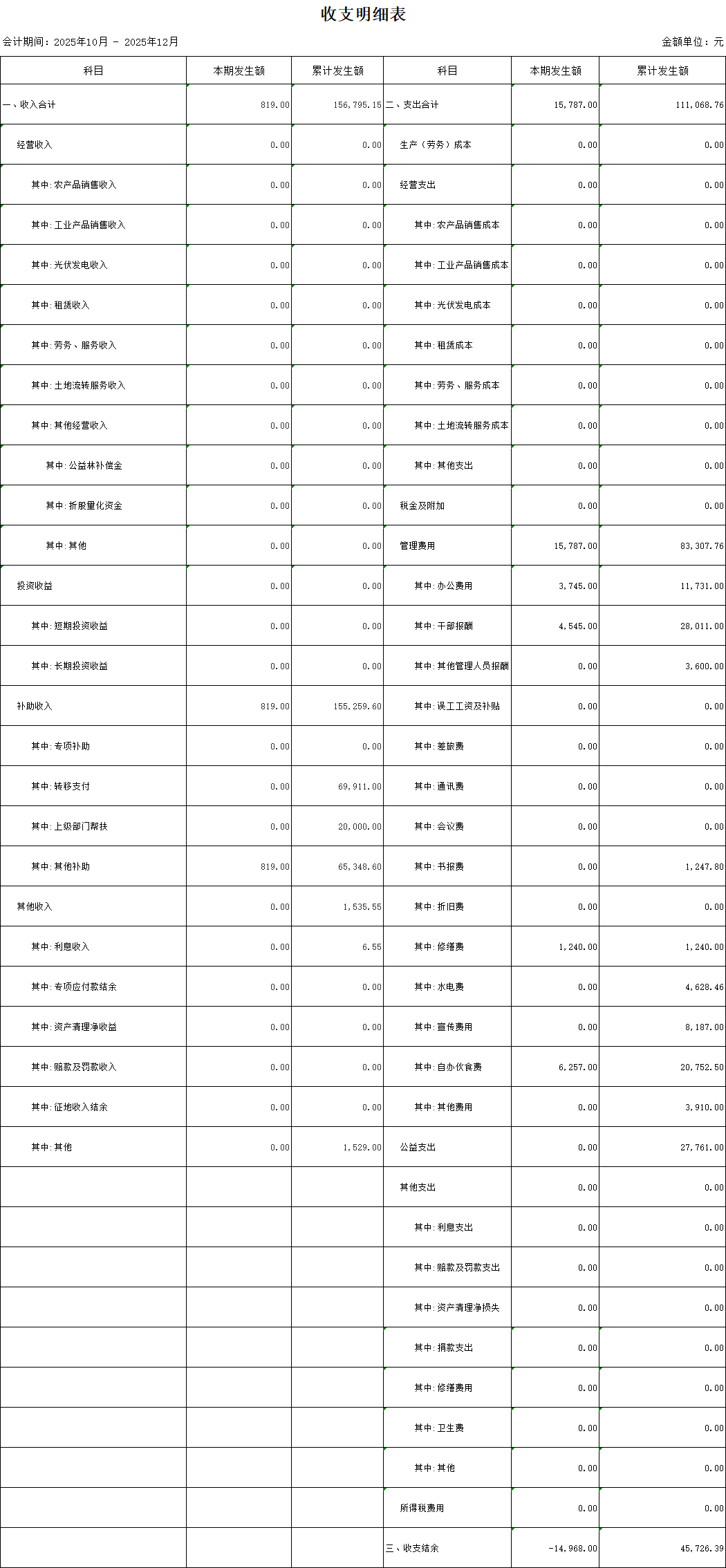 【財(cái)務(wù)收支】園嶺村2025年第四季度收支明細(xì)表公示