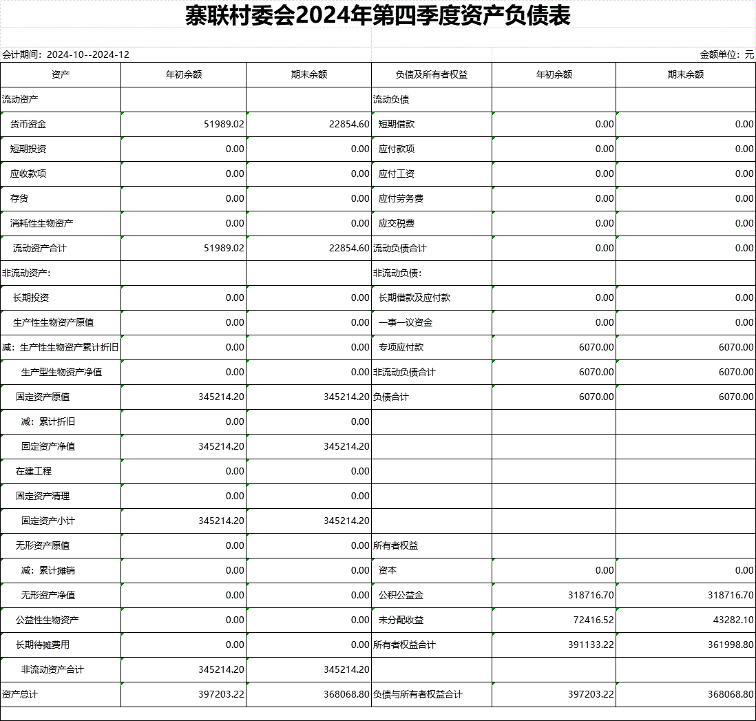 【財(cái)務(wù)收支】寨聯(lián)村2024年第四季度資產(chǎn)負(fù)債表公示