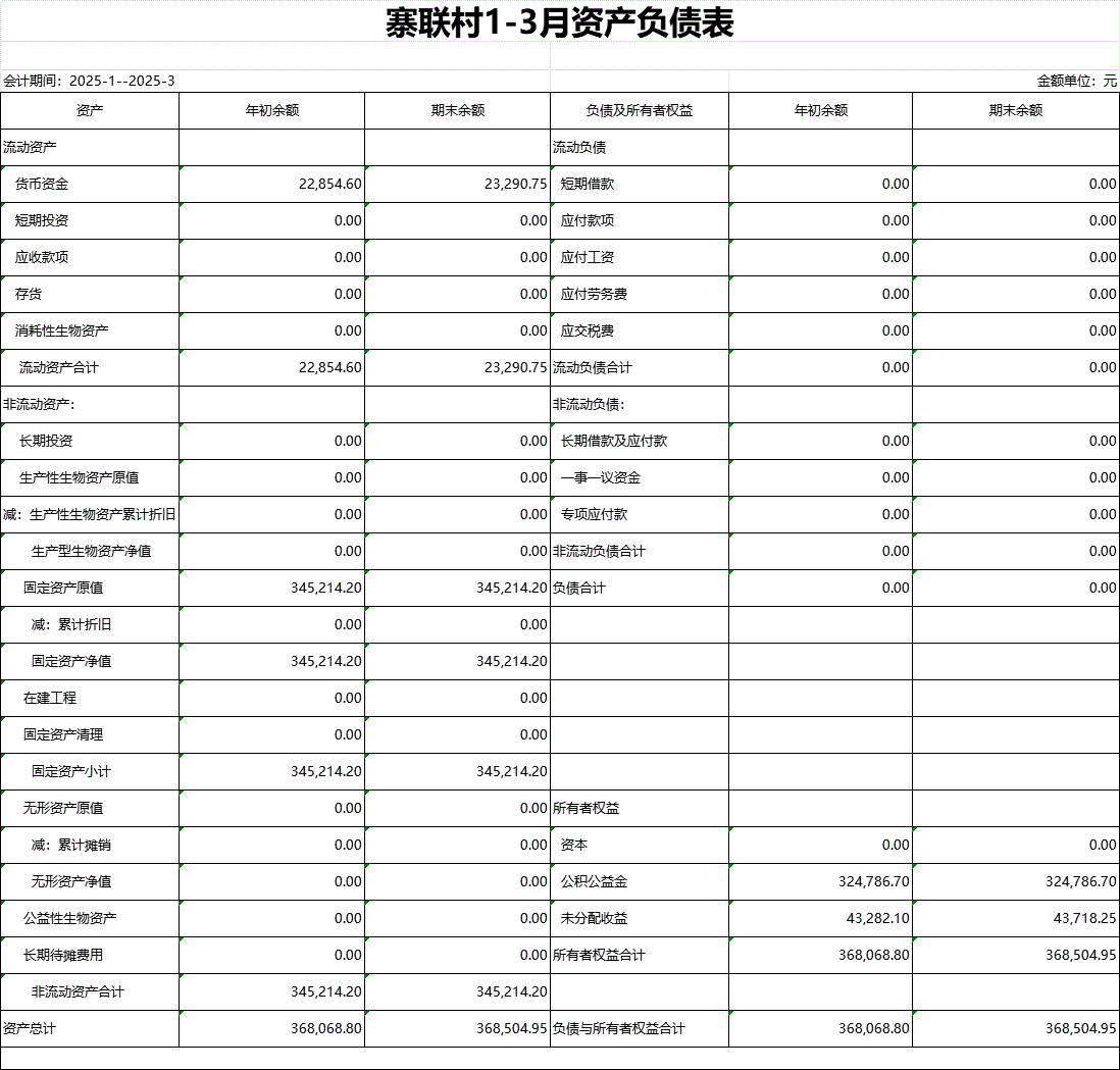 【財(cái)務(wù)收支】寨聯(lián)村2025年第一季度資產(chǎn)負(fù)債表公示