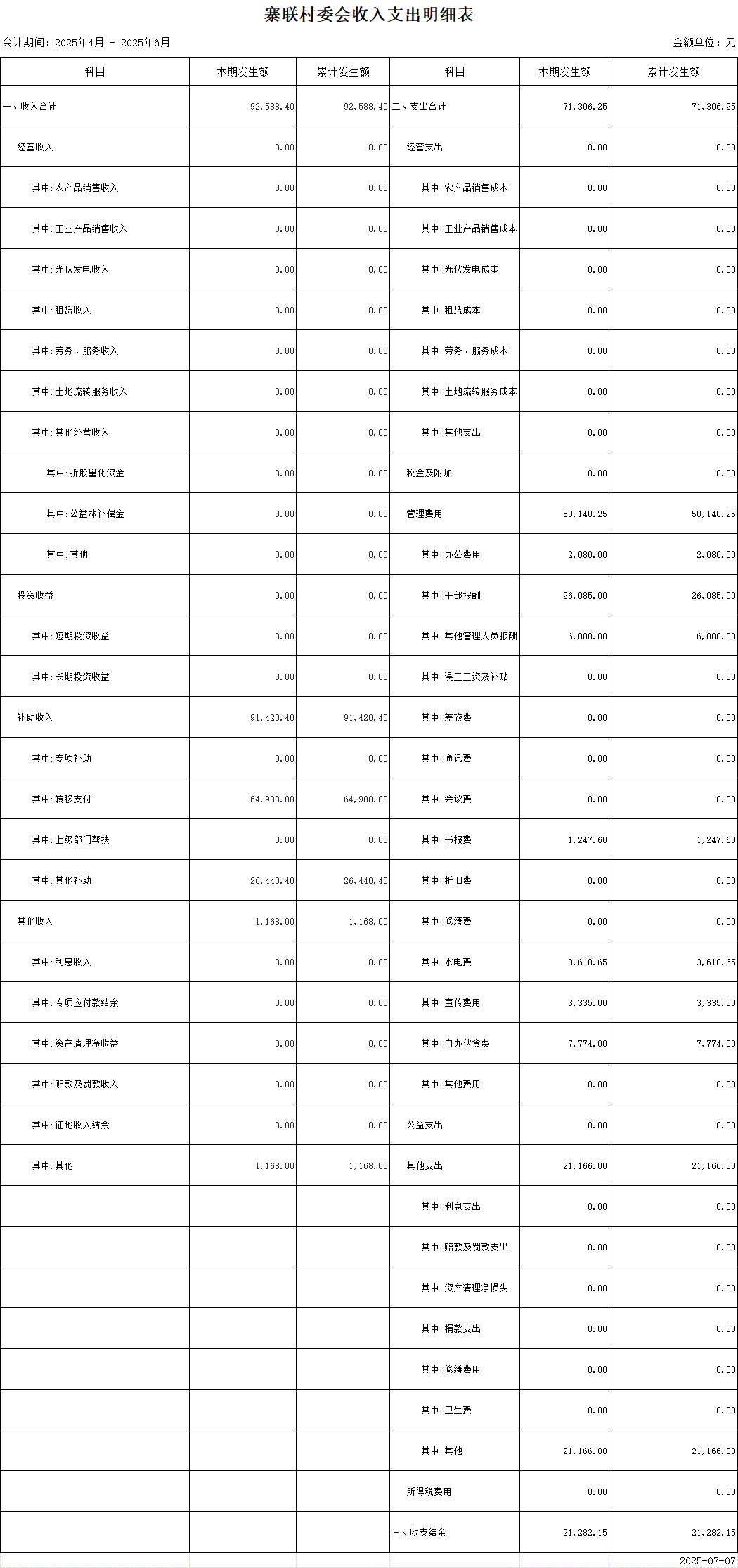 【財(cái)務(wù)收支】寨聯(lián)村2025年第二季度收支明細(xì)表公示