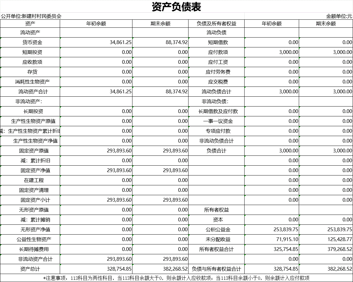 【財務收支】新建村2025年第三季度資產負債表公示