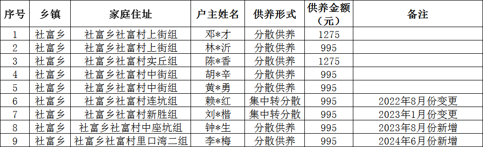 社富鄉社富村2025年12月農村特困分散供養金撥款名單