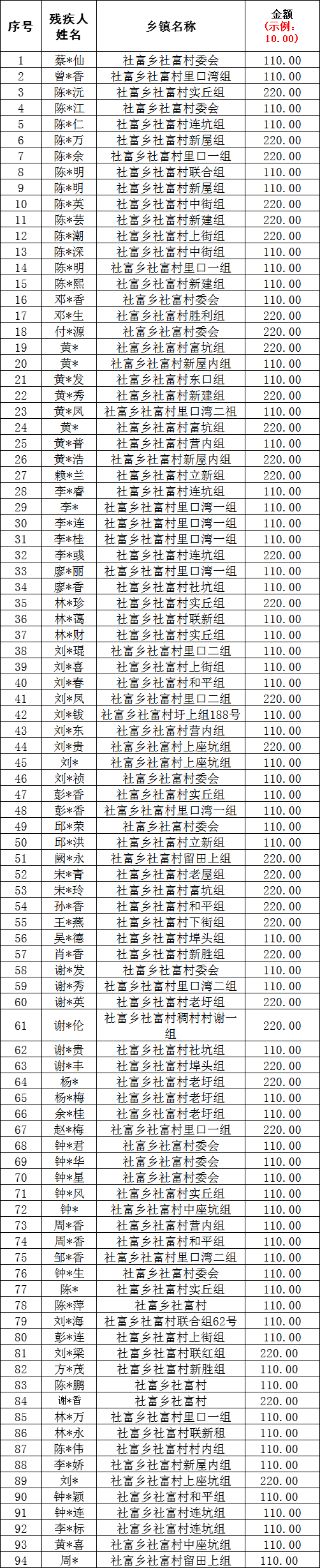 社富村2025年12月殘疾人“兩項”申請發放總表