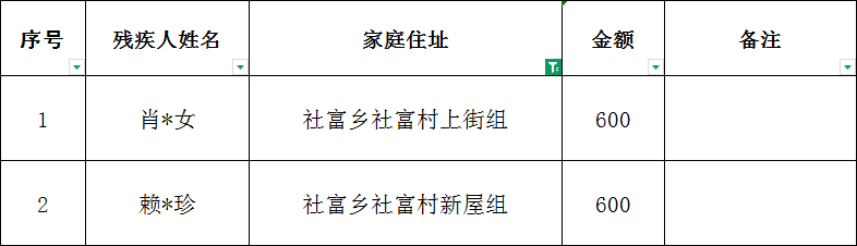 社富鄉社富村2026年1月建檔立卡貧困重度失能殘疾人居家照護對象撥款名單