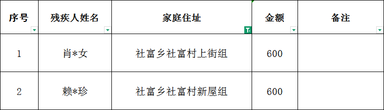 社富鄉社富村2026年2月建檔立卡貧困重度失能殘疾人居家照護對象撥款名單