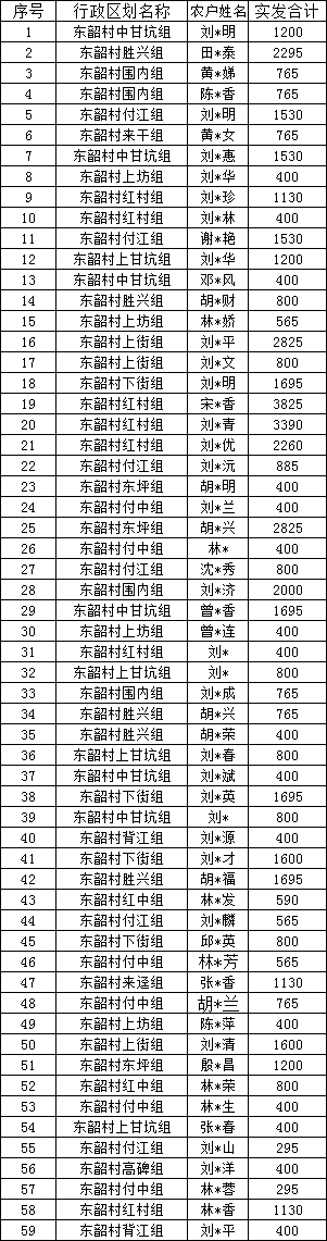 【社會救助】東韶村2025年12月份農村低保名單公示