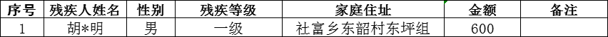 東韶村2025年12月建檔立卡貧困重度失能殘疾人居家照護對象撥款名單