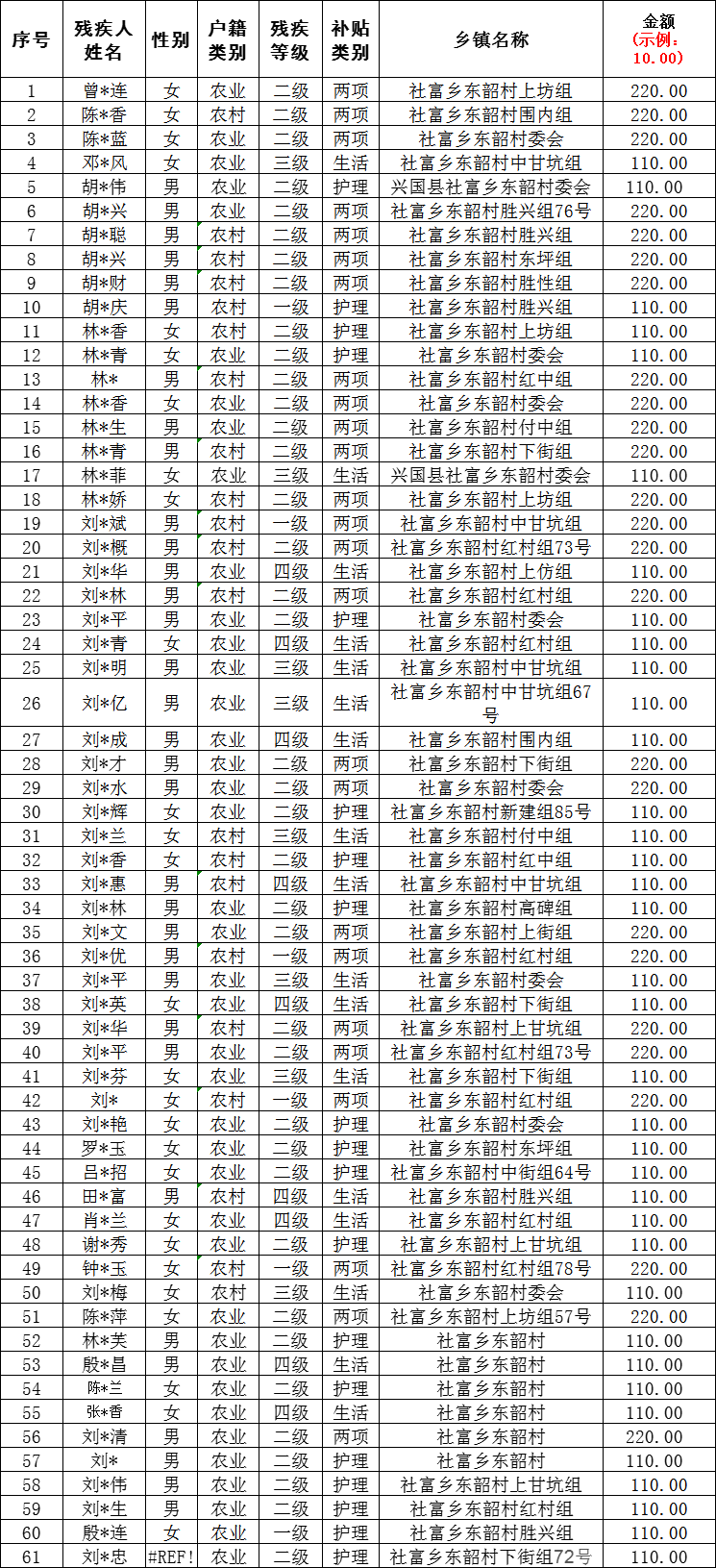東韶村2025年12月殘疾人“兩項”申請發放總表