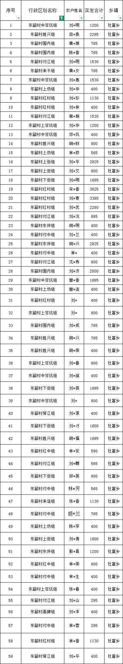 社富鄉東韶村預報2026年1月份農村低保匯總名單