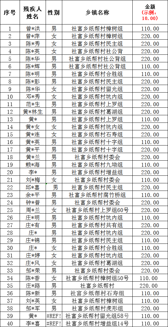 紙幫村2025年12月殘疾人“兩項”申請發放總表