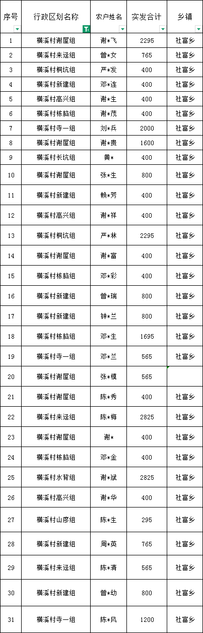 社富鄉(xiāng)橫溪村2026年2月低保花名冊
