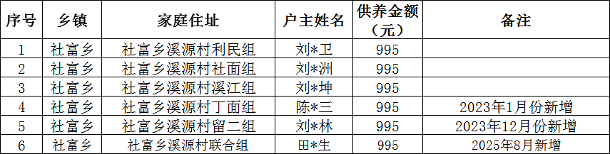 社富鄉溪源村2025年12月農村特困分散供養金撥款名單