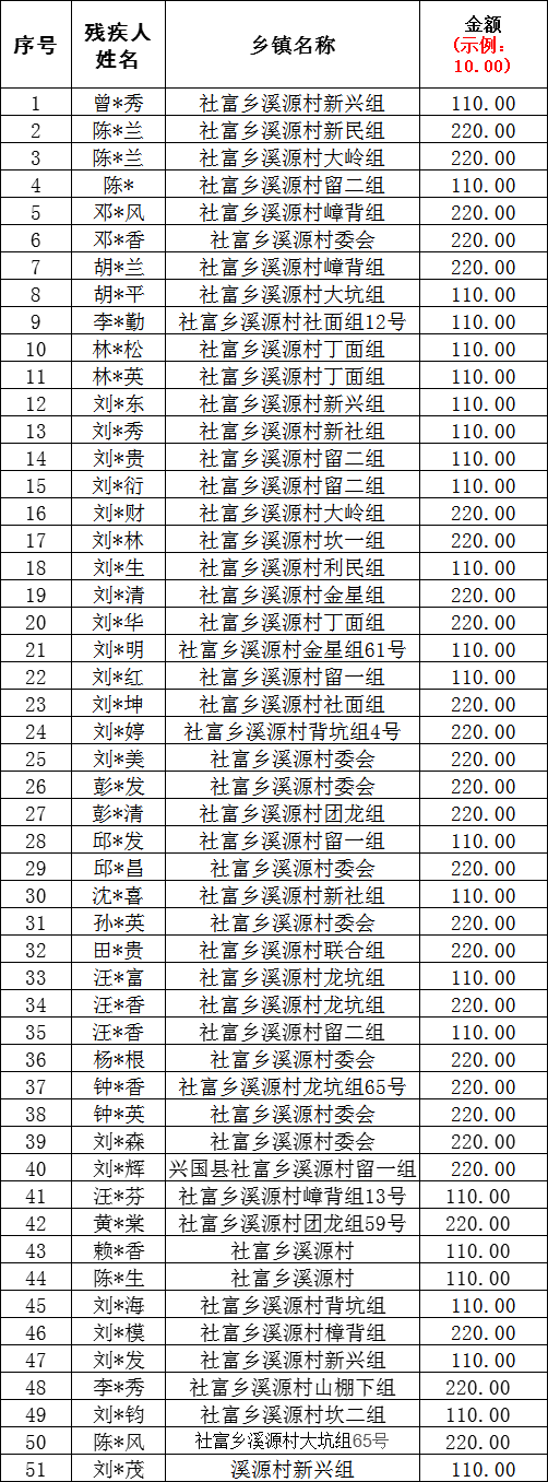 溪源村2025年12月殘疾人“兩項”申請發放總表