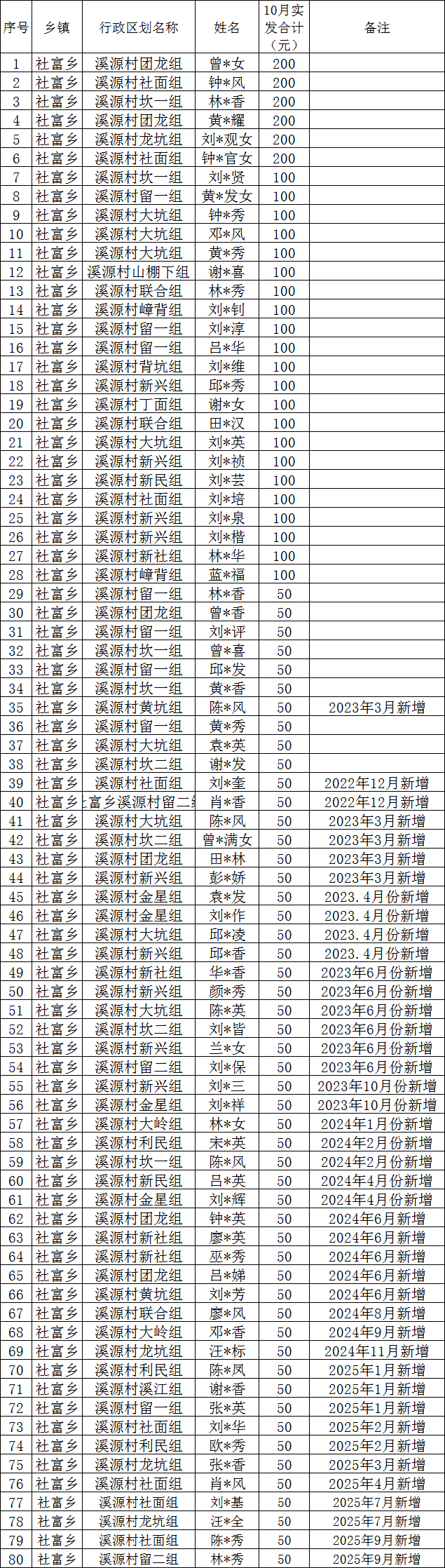 溪源村2025年12月份高齡補(bǔ)貼撥款名單